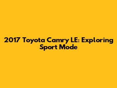 Let's dive into the 2017 Toyota Camry LE and its sport mode. For many car enthusiasts and everyday drivers, understanding the nuances of different driving modes can significantly enhance the driving experience. The 2017 Toyota Camry LE, a popular and reliable sedan, offers a sport mode that promises a more engaging and responsive ride. But what exactly does this sport mode do? How does it change the car's performance, and when should you use it? This article will explore all these aspects and provide a comprehensive overview of the sport mode in the 2017 Camry LE.