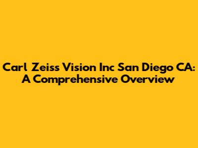 Hey guys! Today, we're diving deep into Carl Zeiss Vision Inc in San Diego, CA. If you're in the area and need top-notch eye care or optical solutions, you've probably heard of them. This article will provide you with a detailed look at what Carl Zeiss Vision offers, where to find them, and why they might be the perfect choice for your vision needs. Let's get started!