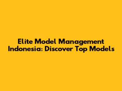 Elite Model Management Indonesia: Discover Top Models