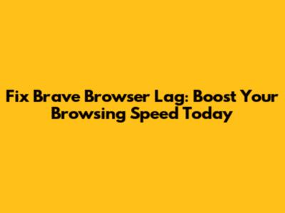Fix Brave Browser Lag: Boost Your Browsing Speed Today