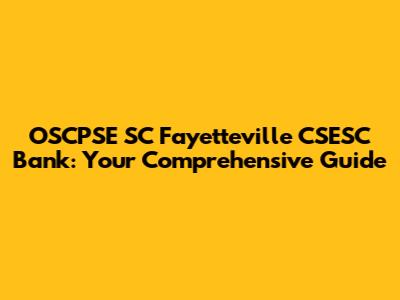 Hey guys! Ever heard of OSCPSE in South Carolina, particularly around Fayetteville? If not, you're in the right place! We're diving deep into what OSCPSE is all about, specifically focusing on its connection to the CSESC bank and the Fayetteville area. Think of this as your one-stop shop for everything you need to know. We'll cover what OSCPSE does, how it relates to the CSESC bank, and how it impacts the Fayetteville community. Get ready to have all your questions answered and maybe even learn a thing or two you didn't know before. This is going to be a fun and informative ride, so buckle up!