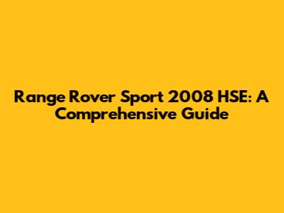 Range Rover Sport 2008 HSE: A Comprehensive Guide