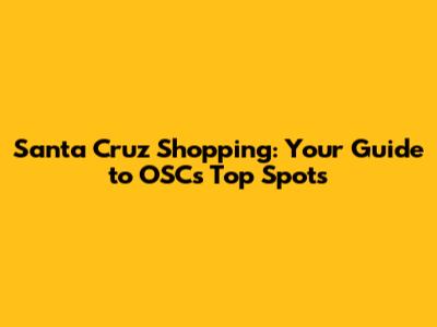Santa Cruz Shopping: Your Guide To OSC's Top Spots