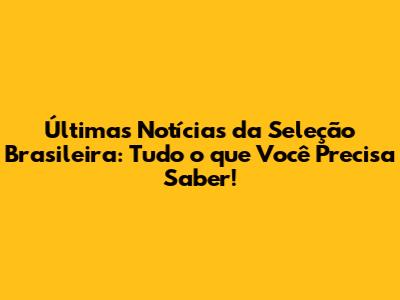 O que tem de mais quente rolando na Seleção Brasileira? Vamos falar sobre os últimos jogos, os destaques e as principais notícias. É importante estarmos atualizados sobre o desempenho da equipe, os resultados e as atuações dos jogadores.