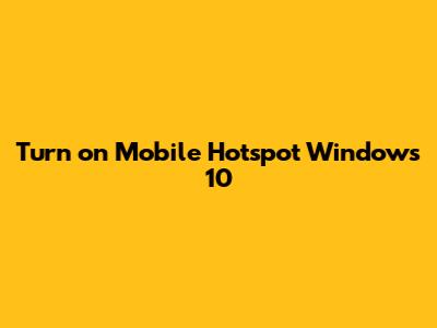 Windows 10: Turn On Mobile Hotspot Easily